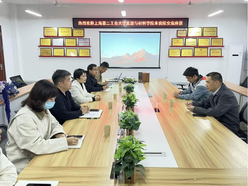 为加强校际合作,交流工作经验,搭建高层次人才培养平台,10月17日,上海第二工业大学能源与材料学院党委副书记干伟伟、副院长许剑光一行来248cc永利集团开展研究生招生宣讲与审核评估工作交流座谈会。248cc永利集团院长于方丽、党总支副书记高均立、副院长李兆、院长助理李鑫及张海鸿等出席会议。会议由院长于方丽主持。