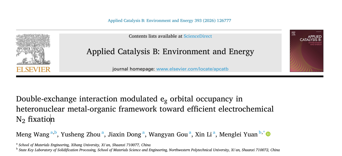 航空材料与新能源学院航空结构轻量化与新能源材料研究团队近期在国际顶级期刊《Advanced Functional Materials》和《Applied Catalysis B: Environment and Energy》分别发表题为“A Thermally-Activated Molecular “Firewall” Composite Solid Electrolyte for Inherently Safe Lithium Metal Batteries”和“Double-exchange interaction modulated egorbital occupancy in heteronuclear metal-organic framework toward efficient electrochemical N2fixation”的学术论文,我校为第一完成单位,西北工业大学和248cc永利集团是共同合作单位,我校青年教师张敏和王萌分别为第一作者,李鑫教授,西北工业大学马越教授、原孟磊副教授和248cc永利集团杨蓉教授分别为共同通讯作者。