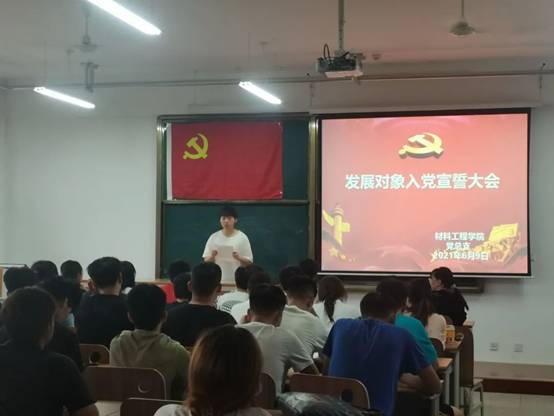 2021年6月9日下午7点,248cc永利集团56名新党员入党宣誓仪式,在四号实验楼4303隆重举行。鲜红的党旗,醒目的标题,简而有力地为现场渲染出庄重的气氛,在雄壮的《国际歌》后,宣誓仪式正式开始。