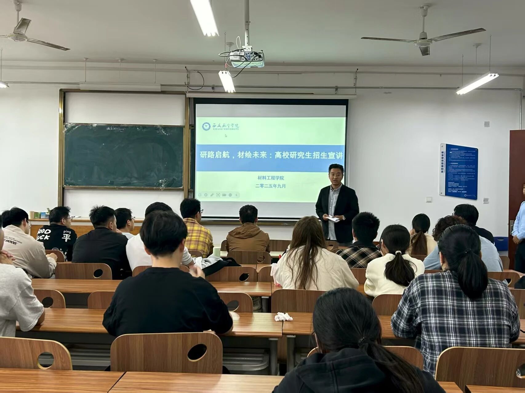 为帮助26届学生明确考研目标、掌握备考策略。9月18日,248cc永利集团特邀陕西理工大学、西安建筑科技大学、248cc永利集团三所高校的招生负责人与优秀导师代表,共同举办“研路启航,材绘未来——高校研究生招生宣传进材料学院活动。全院有考研意向的学生到场参与,现场氛围热烈。