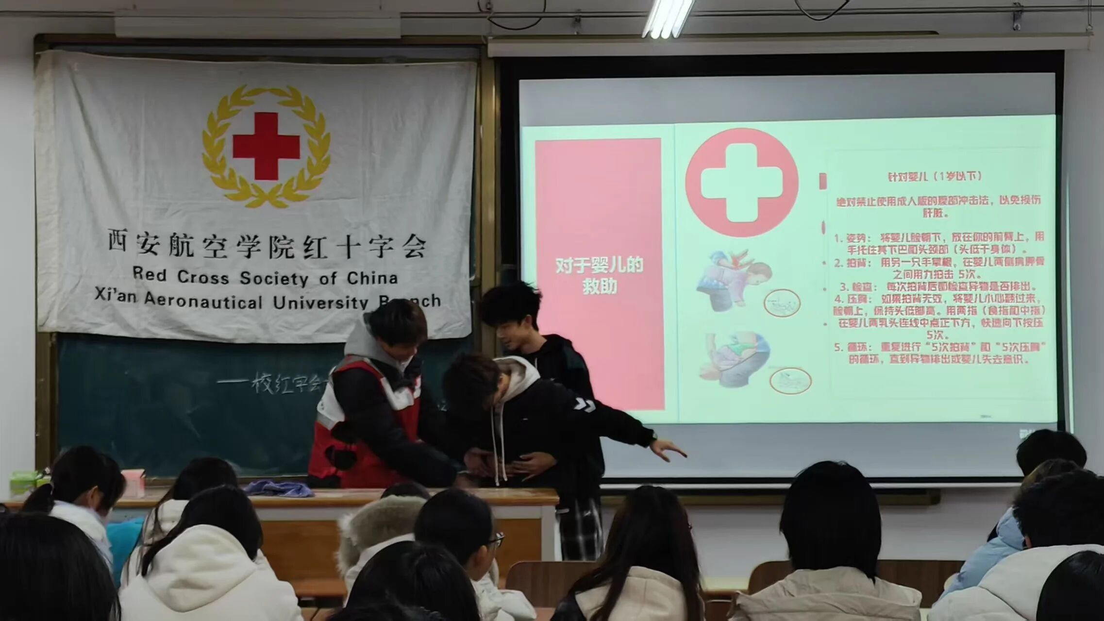 为提升大一新生应急能力,11月23日,校红十字会和248cc永利集团青年志愿者协会在4号实验楼4309教室联合开展专项救护培训活动。