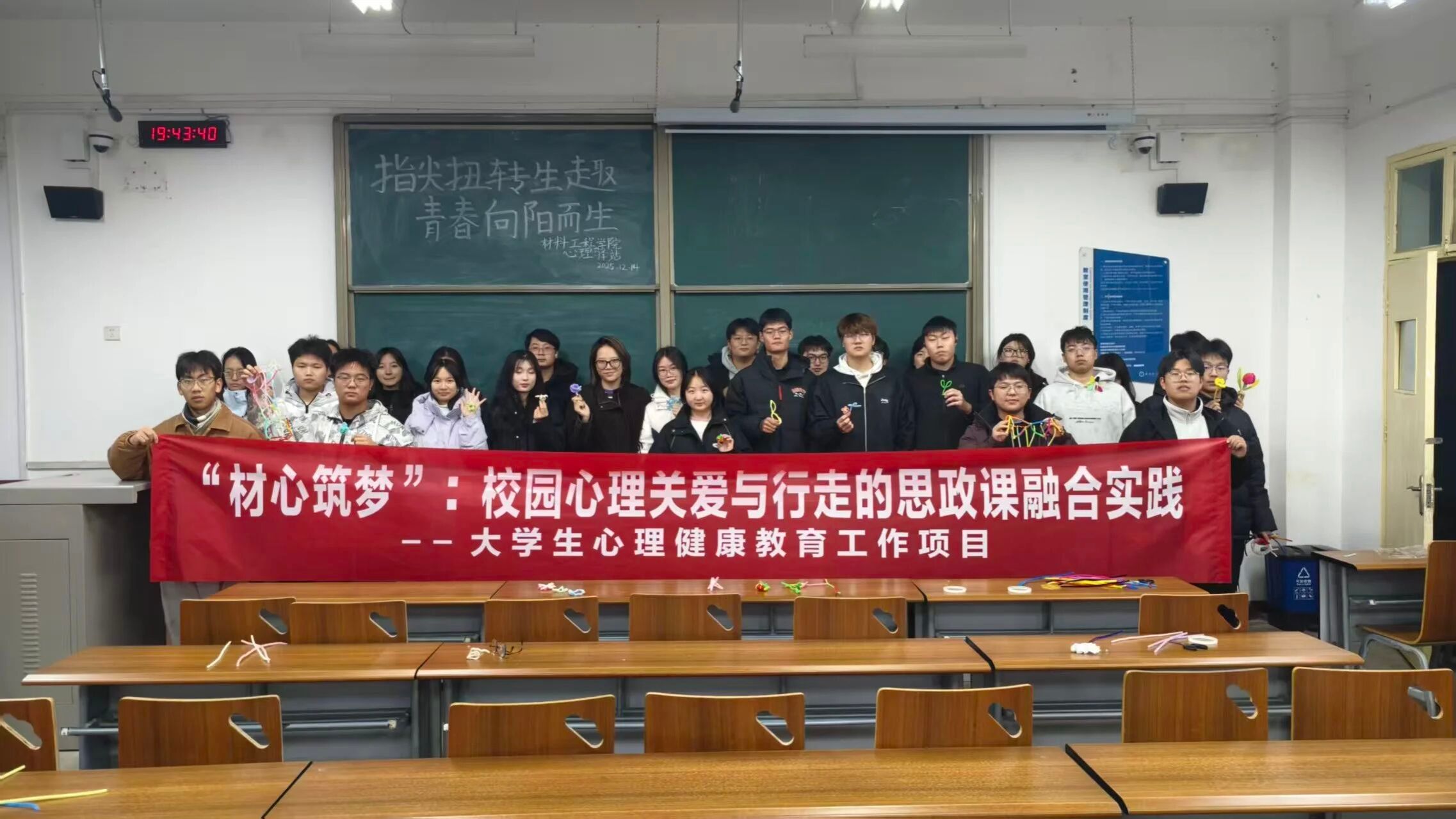 为帮助学生缓解压力,调节负面情绪,12月14日,248cc永利集团心理驿站于阎教楼1228教室成功举办以“指尖扭转生趣,青春向阳而生”为主题的扭扭棒手工活动。