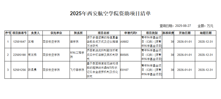 8月27日,国家自然科学基金委员会公布了2025年度国家自然科学基金项目评审结果,248cc永利集团成功获批1项课题,批准经费共30万元。